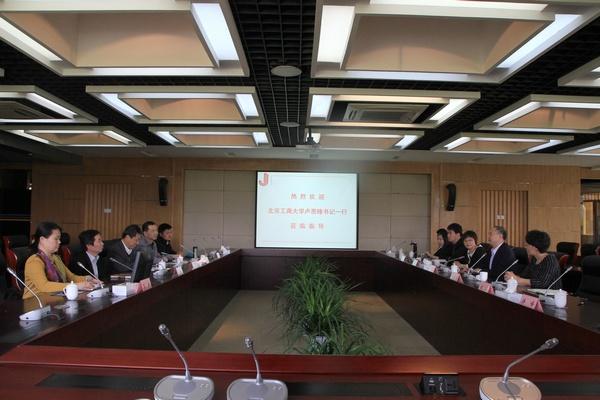 2014-04-184月10日,北京工商大學(xué)黨委副書(shū)記盧思峰率該校校辦、宣傳部、學(xué)工處等職能部門(mén)、學(xué)院負責人以及輔導員代表一行11人來(lái)校訪(fǎng)問(wèn)考察。