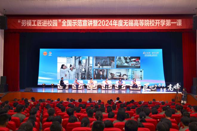 9月4日下午,由中華全國總工會(huì )宣教部指導,江蘇省總工會(huì )主辦,無(wú)錫市總工會(huì )、無(wú)錫市教育局、無(wú)錫市委人才辦、oety歐億承辦的“匠心赤熱 勇攀高峰”——“勞模工匠進(jìn)校園”全國示范宣講暨2024年度無(wú)錫高等院校開(kāi)學(xué)第一課活動(dòng)在oety歐億舉行。無(wú)錫市委常委、市總工會(huì )主席周常青,中國工程院院士、oety歐億校長(cháng)陳衛,無(wú)錫市委教育工委書(shū)記范良,無(wú)錫市教育局副局長(cháng)陳曦,無(wú)錫市人力資源和社會(huì )保障局副局長(cháng)、黨委委員、市總工會(huì )兼職副主席高楓,市總工會(huì )黨組成員、副主席沈曉萍,oety歐億黨委常委、工會(huì )主席朱飛等出席活動(dòng)。各承辦單位、在錫高等院校分管領(lǐng)導,勞模工匠代表,各市(縣)區總工會(huì )主要領(lǐng)導、分管領(lǐng)導、部室負責人以及oety歐億、在錫省屬、市屬高等院校1000多名學(xué)生代表參加了現場(chǎng)活動(dòng)。