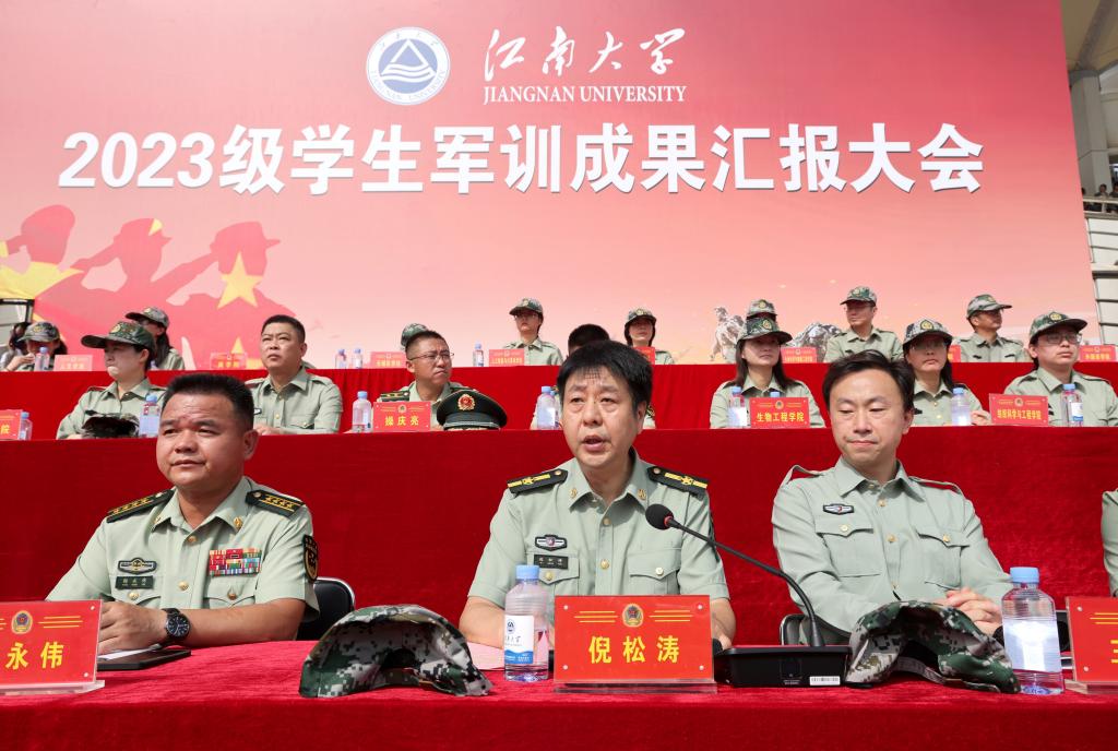 倪松濤發(fā)表講話(huà),他首先向全體參訓并圓滿(mǎn)完成任務(wù)的同學(xué)表示熱烈的祝賀,向承訓部門(mén)領(lǐng)導和官兵致以誠摯問(wèn)候和崇高敬意,向帶訓輔導員、組織保障軍訓工作的全體老師表示衷心的感謝。他對全體參訓同學(xué)提出三點(diǎn)希望:一是志存高遠,胸懷愛(ài)國之情,增強國防意識,以堅韌、頑強的意志書(shū)寫(xiě)屬于自己的青春華章;二是刻苦學(xué)習,繼續發(fā)揚軍訓期間奮進(jìn)昂揚的精神品質(zhì),以實(shí)際行動(dòng)踐行“強國有我、請黨放心”的使命擔當;三是腳踏實(shí)地,在學(xué)習生活中弘揚敢打敢拼、勇挑重擔、敢戰必勝的軍人精神,努力成為中華民族偉大復興的棟梁之才。