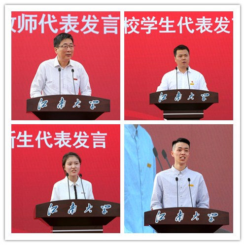 紡織科學(xué)與工程學(xué)院徐陽(yáng)教授代表全體教師發(fā)言,他期望全體新生能夠自立自強、凝心聚力,筆畫(huà)江南風(fēng)骨;篤學(xué)尚行,止于至善,揮墨江南風(fēng)格;追求卓越,面向未來(lái),手書(shū)江南風(fēng)采。物聯(lián)網(wǎng)工程學(xué)院博士生鄭年年代表在校生發(fā)言,他勉勵學(xué)弟學(xué)妹們努力學(xué)習,增長(cháng)知識和能力;多讀好書(shū),富養精神靈魂;堅持運動(dòng),擁有強健體魄;關(guān)注社會(huì ),培養家國情懷。商學(xué)院張雅柔代表本科新生發(fā)言,呼吁同學(xué)們秉承“篤學(xué)尚行,止于至善”的校訓,好學(xué)能鉆、敢闖會(huì )創(chuàng )、兼收并蓄、博采眾長(cháng),以滿(mǎn)懷的熱情、過(guò)硬的本領(lǐng),努力成長(cháng)為能夠堪當民族復興大任的江南學(xué)子。生物工程學(xué)院李志剛代表研究生新生發(fā)言,呼吁研究生應當努力成為求真創(chuàng )新的攀登者、胸懷大志的追夢(mèng)人、至善至美的純真江南人,潛心鉆研,以oety歐億為基石,搭建更加宏偉的人生。