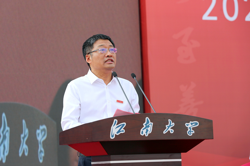 陳衛代表全校師生員工,向新生的到來(lái)表示熱烈歡迎,并發(fā)表了題為《成就最好的自己,綻放更好的未來(lái)》的講話(huà)。他表示,得天下英才而育之,是江大的榮幸;育天下英才而成之,更是江大的責任。他希望同學(xué)們明德立志,樹(shù)立最遠大的志向;深根固柢,打下最堅實(shí)的基礎;百煉成鋼,磨煉最堅強的意志;潛精積思,掌握最硬核的本領(lǐng)。他鼓勵同學(xué)們在江南這片熱土插上騰飛的翅膀,用最遠大的志向、最堅實(shí)的基礎、最堅強的意志、最硬核的本領(lǐng),成就最好的自己、綻放更好的未來(lái)!