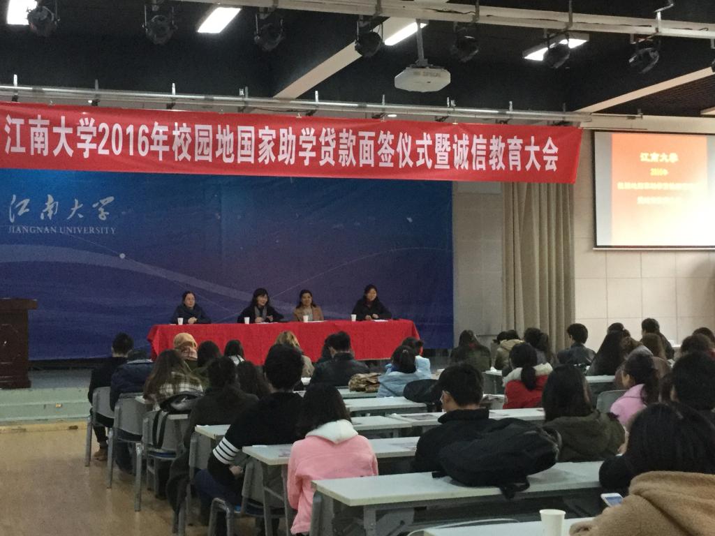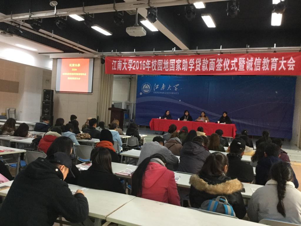 11月24日下午,oety歐億2016年校園地國家助學(xué)貸款面簽儀式暨誠信教育大會(huì )在校北區大學(xué)生活動(dòng)中心F105如期舉行。中國銀行無(wú)錫分行營(yíng)業(yè)部副總經(jīng)理金小燕,oety歐億學(xué)生工作處張海峰、周?chē)祭蠋熞约跋嚓P(guān)學(xué)院師生出席大會(huì )。會(huì )議由學(xué)生資助中心副主任王莉莉主持。