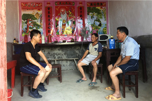 第四站,小分隊來(lái)到小徐家中。今年村里進(jìn)行了扶貧,幫小徐家蓋了一間房。小徐的母親患有疾病,父親一個(gè)人在外打零工。雖然生活比較貧困,但小徐性格開(kāi)朗活潑,樂(lè )于與他人交流,學(xué)習成績(jì)也很好,這個(gè)暑假小徐還在外參加志愿活動(dòng),無(wú)私地幫助他人。家訪(fǎng)小分隊向小徐的父母表示鼓勵小徐讀研,并介紹了國家的相關(guān)補助政策,以及讀研以后的就業(yè)補助以及就業(yè)前景。