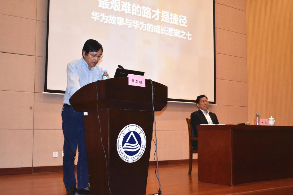 在提問(wèn)環(huán)節,田濤教授對同學(xué)們提出的問(wèn)題進(jìn)行了細致深入的回答。關(guān)于“下一個(gè)倒下的會(huì )不會(huì )是華為?”田教授說(shuō)道:“真正倒下的會(huì )是那些希望永遠享受‘南坡’的舒適與惰怠而不會(huì )是總在‘北坡’艱難行走的人。生于憂(yōu)患,長(cháng)于憂(yōu)患,會(huì )讓華為更加偉大?!贝藭r(shí),會(huì )場(chǎng)響起了熱烈的掌聲。