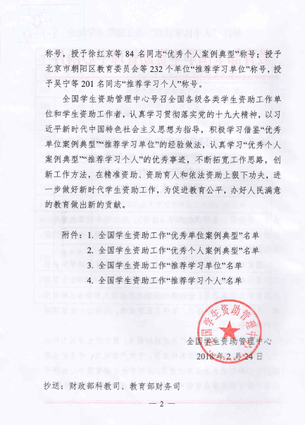 學(xué)生資助是一項重要的保民生、暖民心工程,事關(guān)脫貧攻堅,事關(guān)社會(huì )公平。黨的十九大報告強調要“健全學(xué)生資助制度”,為學(xué)生資助工作進(jìn)一步指明了方向,提出了更新更高的要求。2018年,學(xué)生資助工作將繼續圍繞學(xué)校立德樹(shù)人根本任務(wù),加大工作力度,狠抓政策落實(shí),不斷拓寬工作思路,創(chuàng )新工作方法,在精準資助、資助育人和依法資助上狠下功夫,努力開(kāi)創(chuàng )學(xué)生資助工作新局面。