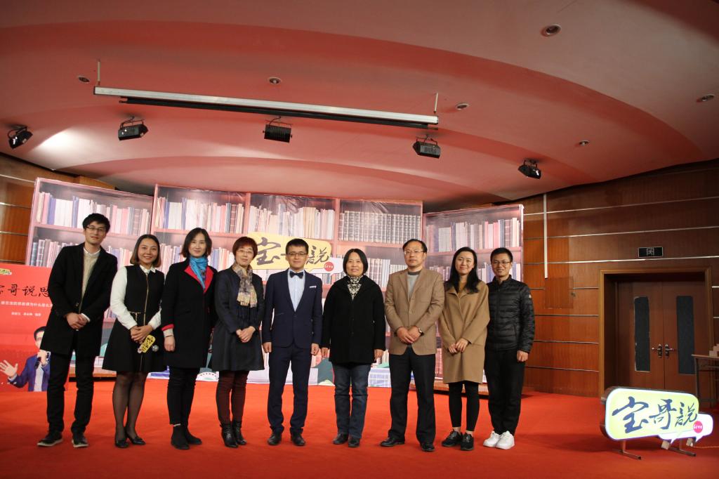 下半場(chǎng),食品學(xué)院輔導員朱偉和人文學(xué)院同學(xué)隋東鑫與唐忠寶和主持人一起回顧交流了《寶哥說(shuō)》的運營(yíng)經(jīng)歷和《寶哥說(shuō)思政》新書(shū)的創(chuàng )作歷程。朱偉從習近平總書(shū)記對當代青年的定位說(shuō)起,談到《寶哥說(shuō)》的初衷是做一檔面向大學(xué)生的大型思政類(lèi)校園文化活動(dòng),用互聯(lián)網(wǎng)思維去運營(yíng),以團隊模式去推進(jìn)。隋東鑫表達了對《寶哥說(shuō)》的線(xiàn)上線(xiàn)下結合活動(dòng)的喜愛(ài),“從學(xué)生中來(lái),到學(xué)生中去”。徐怡麗總結《寶哥說(shuō)思政》是一本集結了團隊智慧的思政書(shū),是思政教育的創(chuàng )新成果。