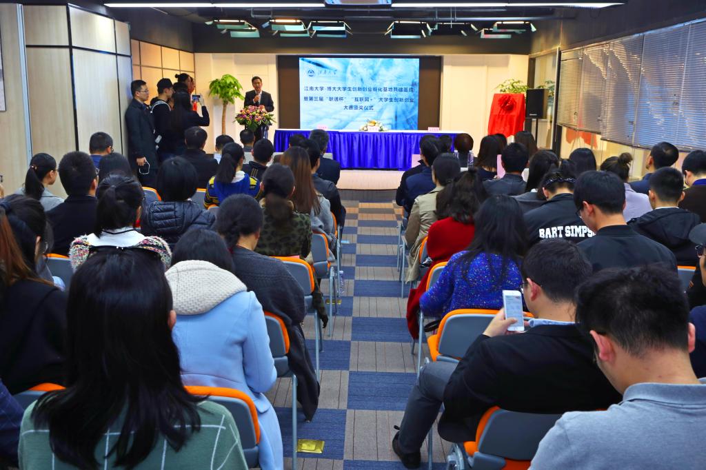 2017年11月14日下午15:30,oety歐億?博大大學(xué)生創(chuàng )新創(chuàng )業(yè)孵化基地共建簽約暨第三屆“聯(lián)通杯”“互聯(lián)網(wǎng)+”大學(xué)生創(chuàng )新創(chuàng )業(yè)大賽頒獎儀式在無(wú)錫博大眾創(chuàng )空間路演大廳隆重舉行。oety歐億黨委副書(shū)記戴月波、江蘇皓錦投資管理有限公司董事長(cháng)吳錦平、聯(lián)通無(wú)錫濱湖分公司總經(jīng)理王志華、無(wú)錫博大置業(yè)有限公司總經(jīng)理岳陽(yáng)、學(xué)生工作處處長(cháng)張菁燕、無(wú)錫博大眾創(chuàng )空間有限公司副總經(jīng)理吳翠、教務(wù)處副處長(cháng)顧志國等領(lǐng)導出席了儀式。oety歐億大學(xué)生創(chuàng )新創(chuàng )業(yè)優(yōu)秀指導老師代表,各學(xué)院分管學(xué)生工作的副書(shū)記,獲獎項目團隊負責人,各學(xué)院負責創(chuàng )新創(chuàng )業(yè)工作的輔導員以及入住oety歐億博大大學(xué)生創(chuàng )新創(chuàng )業(yè)孵化基地的項目團隊代表參加了活動(dòng)。簽約頒獎儀式由學(xué)生工作處副處長(cháng)陳琳主持。