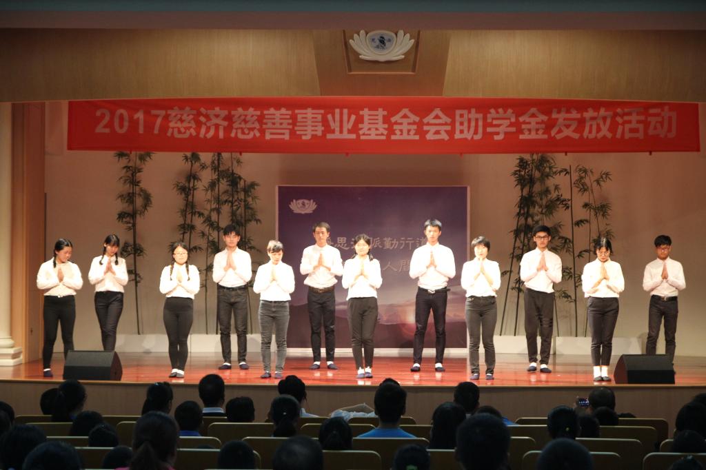 發(fā)放典禮上,oety歐億的受助學(xué)生代表用手語(yǔ)表演了慈濟歌曲《感恩》,簡(jiǎn)單的表演,傳遞著(zhù)愛(ài)的溫暖與感動(dòng)。作為參與慈濟紅豆杉項目的受助學(xué)生代表丁放同學(xué)分享了慈濟大家庭帶給他們的溫暖,以及個(gè)人在慈濟參加環(huán)?;貙W(xué)習和志愿服務(wù)的所感所悟,希望受助學(xué)生能心懷感恩,努力學(xué)習,傳承和發(fā)揚中華民族的大愛(ài)精神。作為慈濟助學(xué)金資助學(xué)生中的大哥哥,大姐姐,oety歐億學(xué)子勤奮學(xué)習、熱心公益,努力成為慈濟受助學(xué)生的榜樣,充分展現了當代大學(xué)生的風(fēng)采。