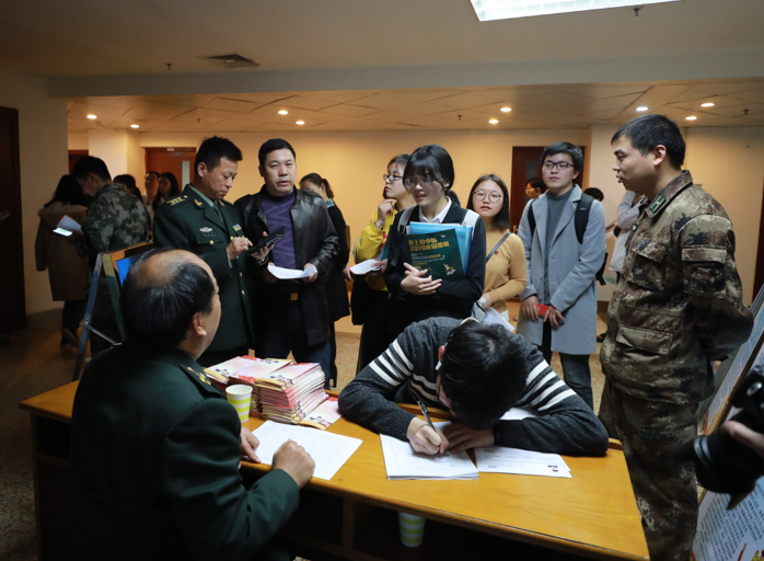 本次征兵宣講會(huì )承襲往年做法,在校畢業(yè)生春季大型招聘會(huì )上設立展位,抓住2019年春招會(huì )畢業(yè)生人數眾多的契機,拓展宣傳渠道,更高效便捷地開(kāi)展政策宣講?;顒?dòng)現場(chǎng)氣氛熱烈,宣傳人員通過(guò)懸掛橫幅、設置咨詢(xún)臺、擺放展板、發(fā)放征兵宣傳資料、現場(chǎng)咨詢(xún)等方式,向同學(xué)們細致地講解了今年的征兵條件、報名方法及相關(guān)優(yōu)待政策,深入宣傳依法服兵役的積極意義,鼓勵適齡青年積極報名應征,報效祖國。