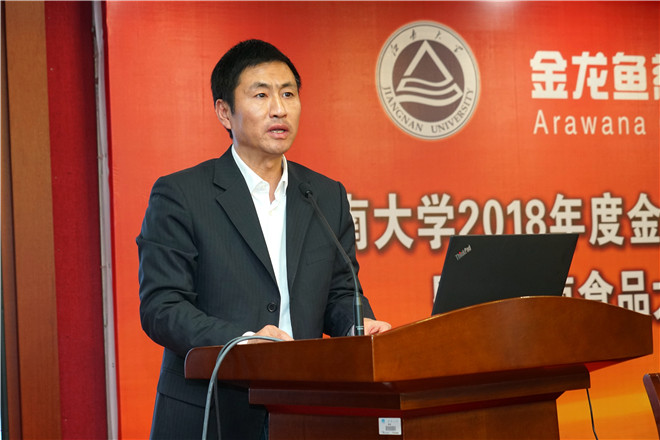 1月7日下午,oety歐億2018年度金龍魚(yú)獎學(xué)金、青年教師獎頒獎典禮暨“江南食品大講堂”第九期主題報告會(huì )在圖書(shū)館5樓報告廳舉行。益海嘉里集團研發(fā)中心總監、豐益(上海)生物技術(shù)研發(fā)中心有限公司總經(jīng)理徐學(xué)兵,益海嘉里集團研發(fā)中心副總監、豐益(上海)生物技術(shù)研發(fā)中心有限公司副總經(jīng)理姜元榮,益海嘉里集團研發(fā)中心資深研究員牛其文、oety歐億黨委副書(shū)記戴月波,社會(huì )資源處處長(cháng)黃敏,學(xué)生工作處處長(cháng)張菁燕,研究生院副院長(cháng)武美萍,食品學(xué)院、生物工程學(xué)院、化學(xué)與材料工程學(xué)院黨委副書(shū)記,以及獲獎師生、學(xué)生代表等共300余人參加頒獎典禮。頒獎典禮由研究生工作部副部長(cháng)單筱婷主持。