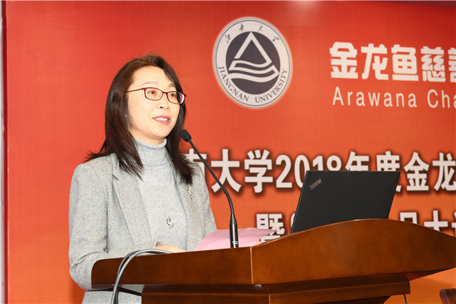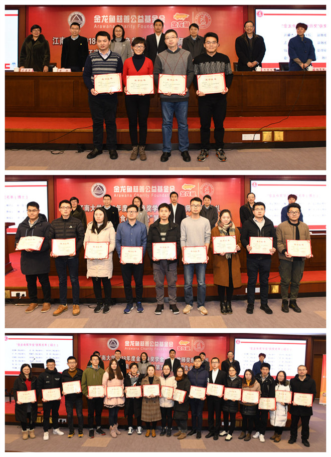 接著(zhù),學(xué)生工作處處長(cháng)張菁燕宣讀了《關(guān)于頒發(fā)oety歐億2018年度金龍魚(yú)獎學(xué)金、青年教師獎的決定》。隨后,金龍魚(yú)獎學(xué)金、青年教師獎獲得者分批上臺受獎,主席臺就坐嘉賓與領(lǐng)導為獲獎師生頒發(fā)榮譽(yù)證書(shū)。生物工程學(xué)院教授夏小樂(lè )、食品學(xué)院博士生石龍凱作為獲獎師生代表分別發(fā)言,他們代表全體獲獎?wù)呦蚪瘕堲~(yú)慈善公益基金會(huì )、豐益(上海)生物技術(shù)研發(fā)中心有限公司表示感謝,對益海嘉里集團興學(xué)助教的責任擔當表示敬重,在分享科學(xué)研究心得與經(jīng)驗的同時(shí),鄭重承諾將以此次獲獎作為新的出發(fā)點(diǎn),將在各自的科研領(lǐng)域勇攀高峰,瞄準服務(wù)產(chǎn)業(yè)的主方向,努力為輕工食品行業(yè)的科技進(jìn)步做出應有的貢獻。