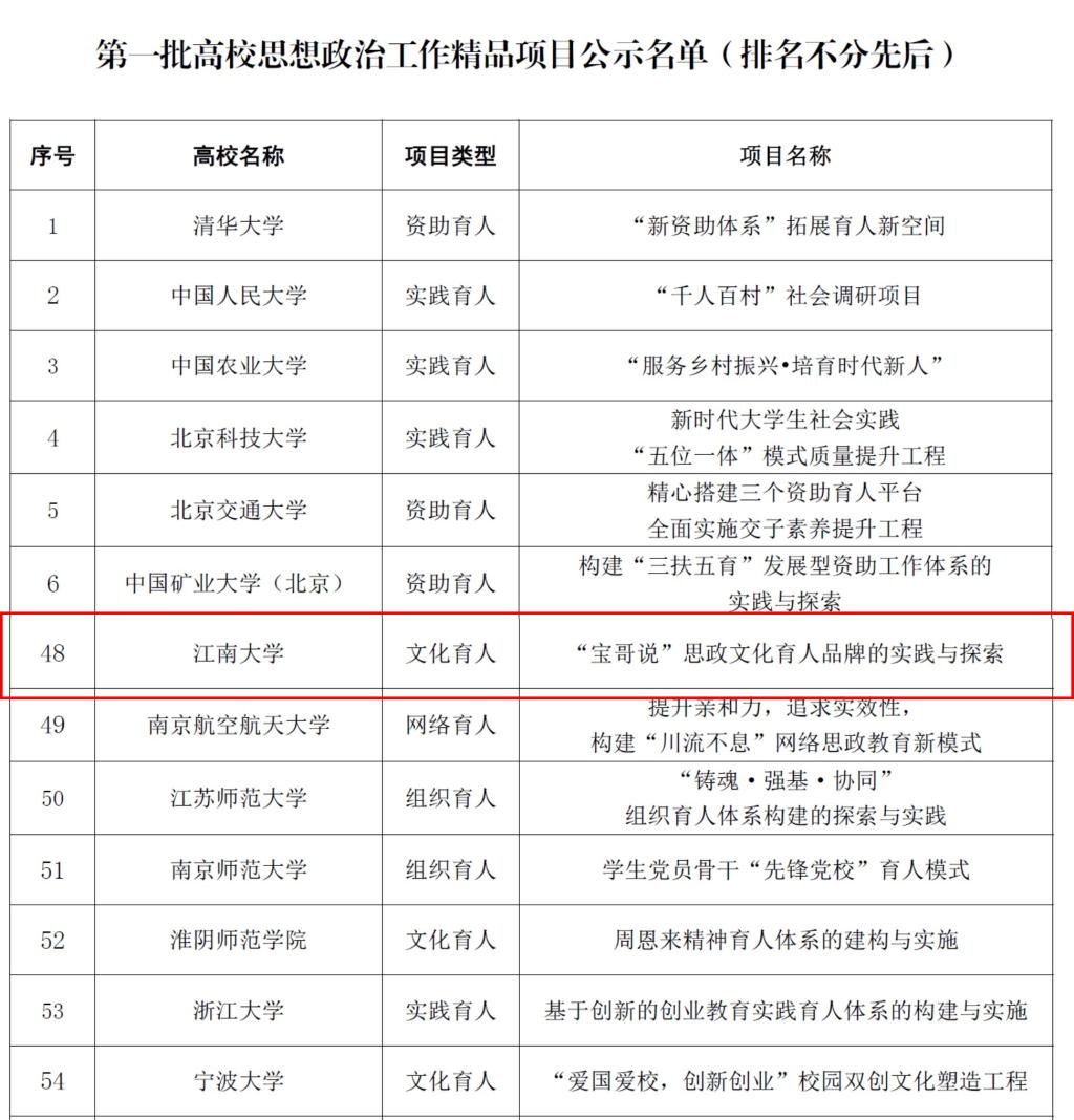 近日,教育部發(fā)文公布高校思想政治工作精品項目遴選結果,oety歐億文化育人項目“‘寶哥說(shuō)’思政文化育人品牌的實(shí)踐與探索”入選教育部首批高校思想政治工作精品項目。