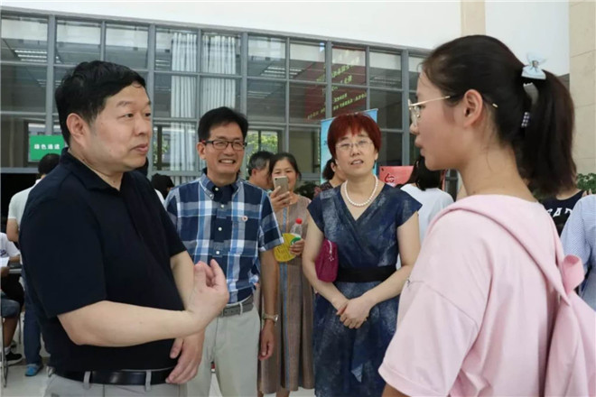 校長(cháng)陳堅在綠色通道辦理點(diǎn)與學(xué)生交流