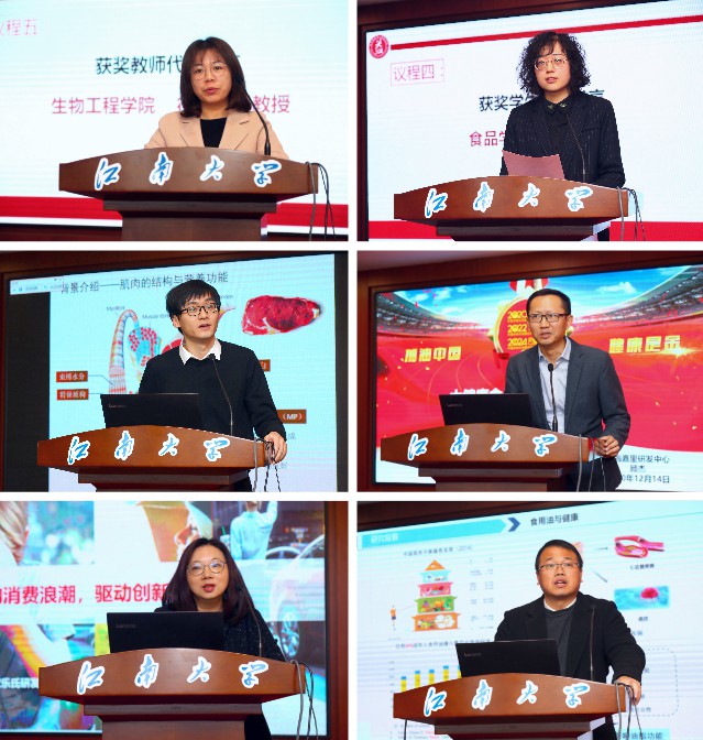 學(xué)術(shù)交流會(huì )上,顧杰以“大健康時(shí)代糧油食品的發(fā)展趨勢與挑戰”為題、食品科學(xué)與技術(shù)國家重點(diǎn)實(shí)驗室副研究員陳星以“肉品科技前沿與食品創(chuàng )新” 為題、于婭以“解構消費浪潮驅動(dòng)創(chuàng )新成功”為題、食品學(xué)院研究員徐勇將以“加工過(guò)程對菜籽油品質(zhì)和健康作用的影響”為題分別進(jìn)行了主題發(fā)言,他們對各自研究領(lǐng)域及最前沿學(xué)術(shù)成果進(jìn)行了詳細介紹,希望同學(xué)們能夠珍惜時(shí)光、努力學(xué)習,不辜負學(xué)校的培養,努力成為未來(lái)行業(yè)發(fā)展的中堅力量。