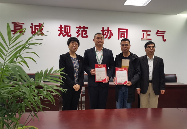 張菁燕處長(cháng)、盧長(cháng)征書(shū)記向石晨曦、李亞兵送達感謝信