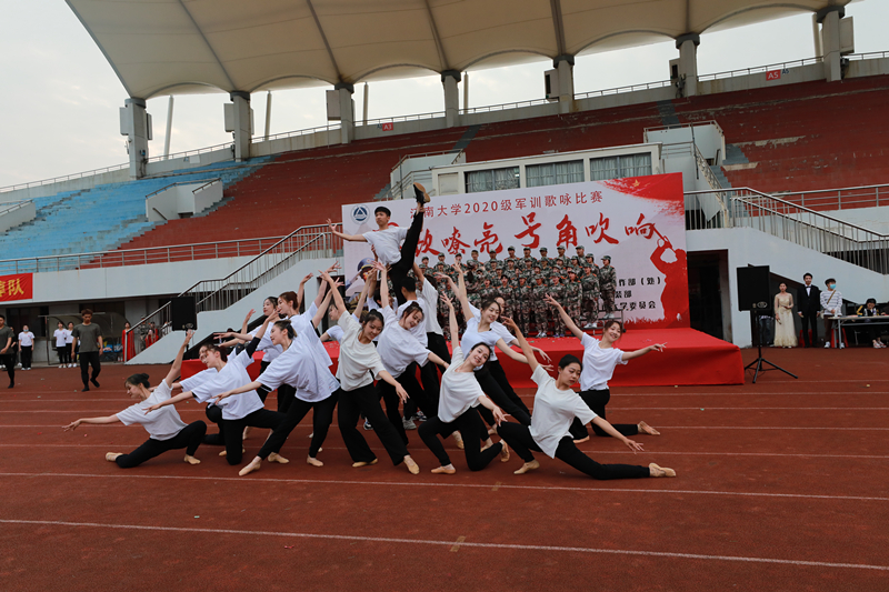 在比賽中,各參賽學(xué)院精彩演繹了各具特色的自選軍歌曲目,例如物聯(lián)網(wǎng)工程學(xué)院的《祖國不會(huì )忘記》、人文學(xué)院的《共和國之戀》等,他們不僅用嘹亮渾厚的歌聲感染著(zhù)每一位現場(chǎng)觀(guān)眾,而且用舞蹈傳達著(zhù)軍人的精神。比賽最后,錢(qián)琳副教授與軍訓教官合唱軍歌《不要問(wèn)為什么》將現場(chǎng)氣氛推向高潮,也讓同學(xué)們對軍人產(chǎn)生了濃厚的崇敬之情。