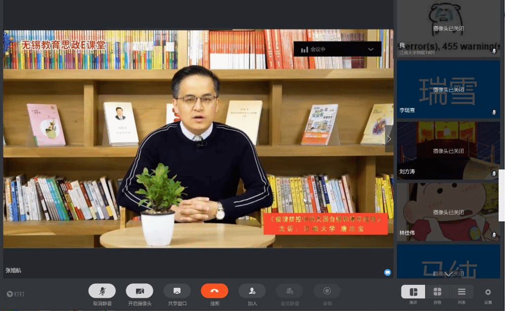 本次講座主題為“疫情防控中的大國自信和青年擔當”,唐忠寶教授以朋友圈廣泛轉發(fā)的網(wǎng)文《江蘇,你過(guò)分了!》為切入點(diǎn),對江蘇省在戰“疫”過(guò)程中的出色表現予以稱(chēng)贊,他認為無(wú)論是蘇北的豪邁雄壯,還是蘇南的家國情懷,在支持同胞為國出力上,沒(méi)有所謂的“散裝”,只有從不含糊、不遺余力的“蘇大強”。他以無(wú)錫市第二人民醫院呼吸與危重癥醫學(xué)科副主任醫師王洵母女、無(wú)錫市人民醫院臨床研究中心浦浙寧夫婦的戰“疫”事跡為代表,致敬無(wú)錫的“最美逆行者”,為他們“舍小家為大家”的崇高精神所感動(dòng)。唐教授強調了疫情防控過(guò)程中,以“90后”、“00后”為代表的青年人用行動(dòng)證明,新時(shí)代的中國青年是好樣的,是堪當大任的!他引用習近平總書(shū)記在給北京大學(xué)援鄂醫療隊全體“90后”黨員的回信中的語(yǔ)句,指出青年一代有理想、有本領(lǐng)、有擔當,國家就有前途,民族就有希望。勉勵廣大青年不懼風(fēng)雨、勇挑重擔,讓青春在黨和人民最需要的地方綻放絢麗之花。唐教授表示通過(guò)這次的抗擊新冠肺炎疫情,不少同學(xué)對國家、民族和社會(huì )的認知和情感都發(fā)生了非常大的轉變,對愛(ài)國主義也有了更加客觀(guān)、理性的認識。他希望各位同學(xué),看待疫情要冷靜、樂(lè )觀(guān),看待國家要理性、客觀(guān),在此基礎上,堅定中國特色社會(huì )主義的道路自信、理論自信、制度自信、文化自信。