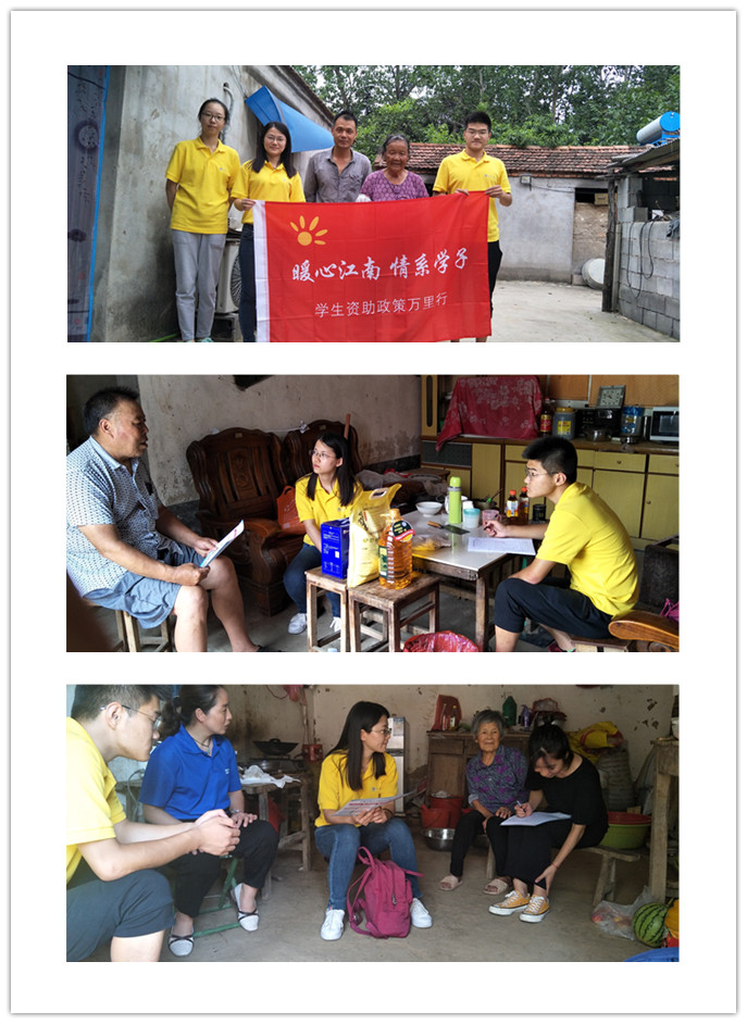 7月1日至7月4日,由商學(xué)院分團委書(shū)記林增、資助工作輔導員孫旭媛以及4名同學(xué)組成的走訪(fǎng)小分隊,前往宿遷市泗陽(yáng)縣、泗洪縣和沭陽(yáng)縣,走訪(fǎng)了6個(gè)學(xué)院的14名經(jīng)濟困難學(xué)生家庭,為學(xué)生及其家人詳細全面地講解了國家資助政策和學(xué)校資助體系,并帶去了學(xué)校的關(guān)心與慰問(wèn)。