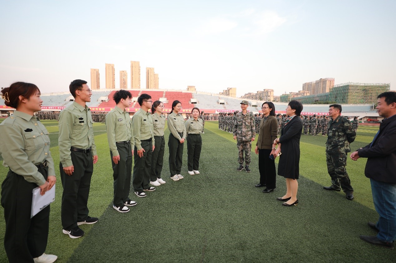 張影陸還走進(jìn)軍訓方隊,觀(guān)看方隊的訓練情況,各方隊在教官的指導下開(kāi)展訓練,學(xué)生英姿煥發(fā),口號鏗鏘有力,展現了新一代江南學(xué)子朝氣蓬勃、拼搏奮發(fā)的精神風(fēng)貌。