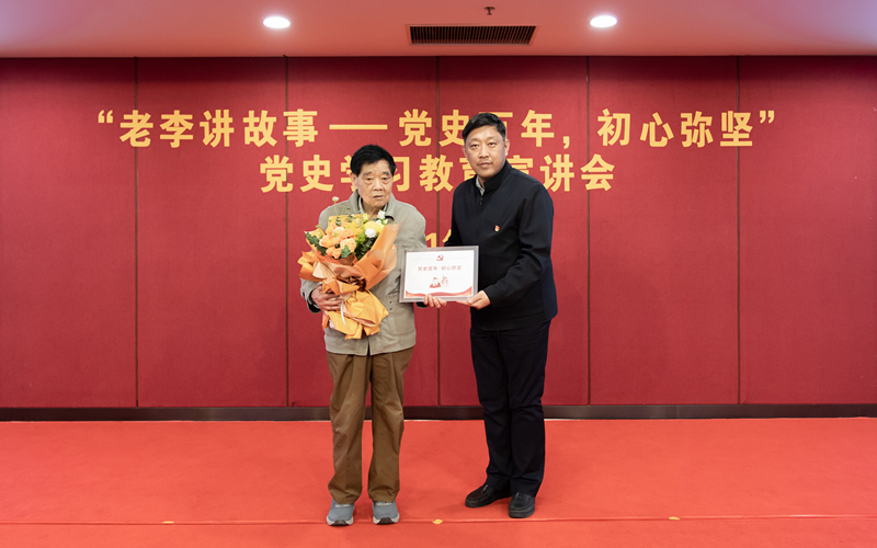 活動(dòng)伊始,全場(chǎng)師生通過(guò)觀(guān)看《黨史百年·初心彌堅》微視頻,回顧中國共產(chǎn)黨百年奮斗的崢嶸歲月。劉淼向李宗元贈送“老李講故事”黨史學(xué)習教育宣講會(huì )紀念牌,并對李老多年來(lái)為學(xué)校思政育人工作做出的突出貢獻表示感謝。