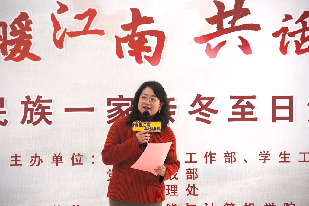 冬至大如年,江南話(huà)團圓。12月22日下午,oety歐億100余名各民族師生齊聚二食堂二樓開(kāi)展“情暖江南,共話(huà)團結”民族一家親冬至日活動(dòng)。oety歐億黨委學(xué)生工作部、學(xué)生工作處副部長(cháng)蔣潔、黨委統戰部副部長(cháng)王冰、黨委保衛部副部長(cháng)王宇灝、后勤管理處飲服中心主任張明亮、oety歐億派駐老師巴依里克出席活動(dòng)。各學(xué)院民族生管理輔導員、2023級本碩博新生代表參加活動(dòng)。