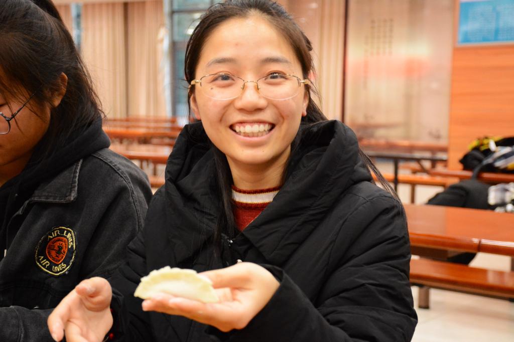 節目表演后,師生們圍坐一起邊包餃子邊話(huà)家常。搟餃皮、包餃子、話(huà)友情,大家分工配合,各展其能,時(shí)不時(shí)還相互切磋包餃子的技法,看著(zhù)餐盒里一排排的餃子,有大有小,有扁有圓,形狀各異……現場(chǎng)氣氛愉悅融洽,每個(gè)人臉上都洋溢著(zhù)開(kāi)心的笑容。最后,大家一邊品嘗著(zhù)自己動(dòng)手做的水餃,一邊分享著(zhù)自己此次活動(dòng)的心得經(jīng)驗和相聚樂(lè )趣。