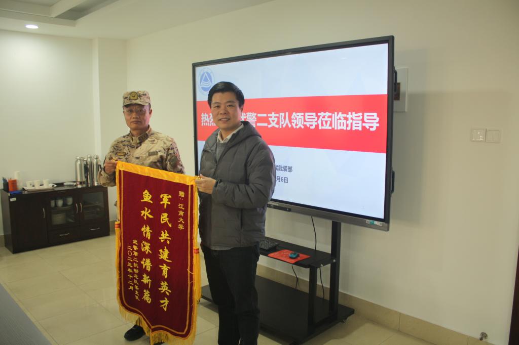 12月6日,駐錫武警某部副政委崔心燦、保衛科科長(cháng)羅亞運到訪(fǎng)oety歐億,并為oety歐億贈送錦旗。校人武部部長(cháng)周偉濤代表學(xué)校接受了錦旗,并與部隊到訪(fǎng)代表進(jìn)行了座談交流,校人武部副部長(cháng)俞立峰、國防教育中心科長(cháng)劉璇剛參與了座談。