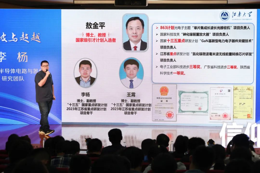 寬禁帶半導體電路與器件團隊的李楊老師以“突破與超越”為核心對當下國內半導體制造面臨的困境進(jìn)行分析。他指出半導體產(chǎn)業(yè)作為大國博弈的重要利器,是支撐現代經(jīng)濟社會(huì )發(fā)展的戰略性、基礎性和先導性產(chǎn)業(yè),是引領(lǐng)新一輪科技革命和產(chǎn)業(yè)變革的關(guān)鍵力量。他強調“突破封鎖,自主創(chuàng )新之路任重而道遠,不能盲目追求短頻快,更要沉下心來(lái)踏實(shí)做事?!弊詈?,他勉勵同學(xué)們要有敢為人先的創(chuàng )新精神,潛心學(xué)習專(zhuān)業(yè)知識,練就扎實(shí)的基本功,為國家科技創(chuàng )新貢獻自己的力量。