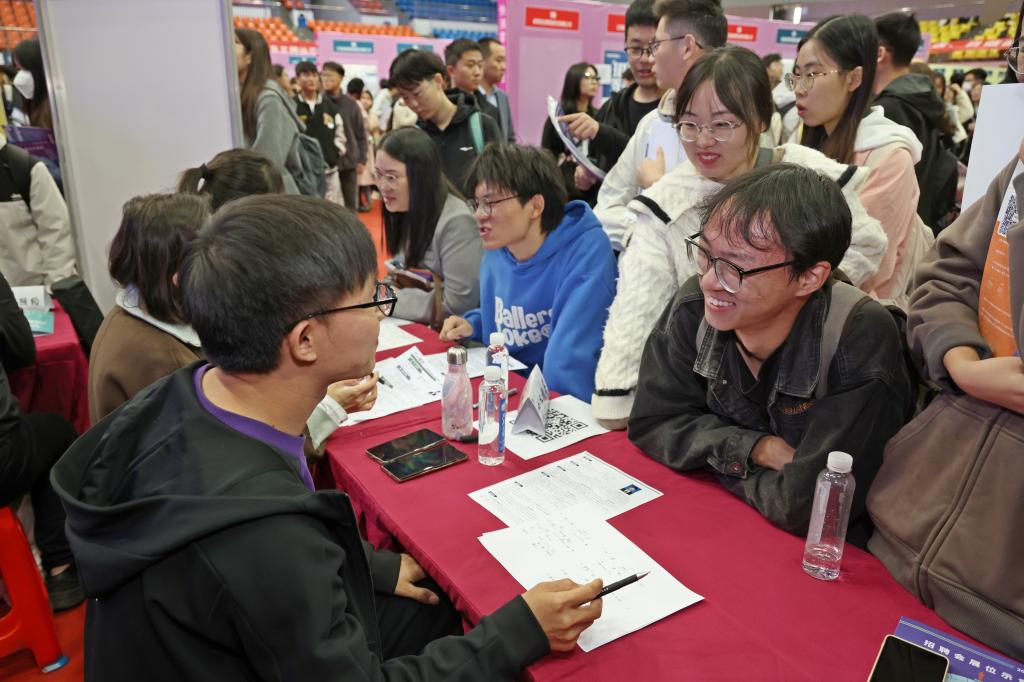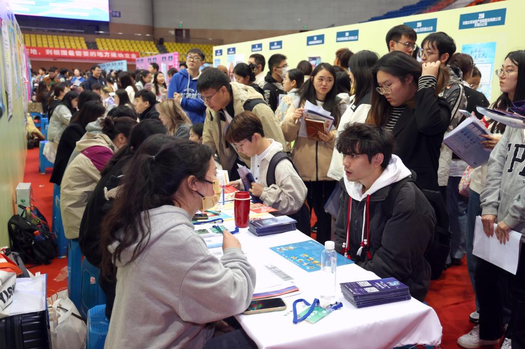 招聘會(huì )現場(chǎng)為學(xué)生提供職業(yè)生涯咨詢(xún)服務(wù)
