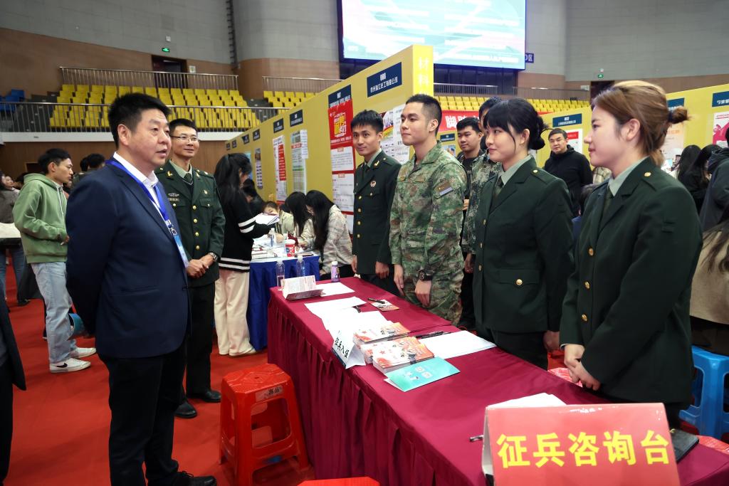 校領(lǐng)導與征兵咨詢(xún)工作人員交流