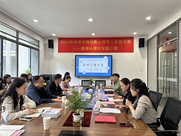 第二期醫師心理沙龍率先在北活F111開(kāi)展,無(wú)錫市精神衛生中心主任醫師張國富、學(xué)生工作部(處)副部(處)長(cháng)蔣潔、心理健康教育中心專(zhuān)職教師,以及各學(xué)院心理輔導員共同參與本次交流?;顒?dòng)由心理中心主任張慧主持。