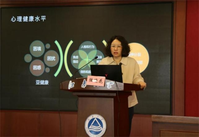 陸教授結合多年學(xué)生工作經(jīng)驗及深厚的心理危機識別功底,以大學(xué)生心理健康與其依戀水平的關(guān)系為開(kāi)場(chǎng),詳細剖析了大學(xué)生心理問(wèn)題的內在動(dòng)力,進(jìn)而引出精神分裂癥、抑郁癥、雙相情感障礙等常見(jiàn)心理疾病的特征,以及心理問(wèn)題防治的目標和自殺風(fēng)險因素。陸教授指出,春季學(xué)期是心理問(wèn)題與危機的高發(fā)期,在工作中,應當借助四級網(wǎng)絡(luò )體系、八種識別途徑、九大識別表現,做好心理危機的識別和預警工作。她強調,與危機學(xué)生工作時(shí)要注意建立包容、理解、非敵對的工作同盟關(guān)系,注意邊界與安全,給予學(xué)生環(huán)境支持并引導學(xué)生自我支持,以達到最佳工作效果。陸老師幽默風(fēng)趣、妙語(yǔ)連珠,使參訓老師對心理危機干預的識別與預警有了更加全面的認識和理解。