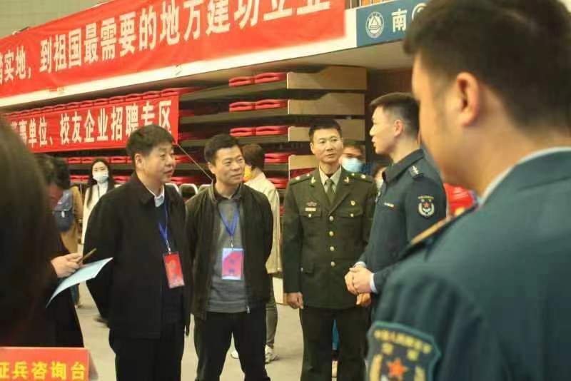 為鼓勵畢業(yè)生積極參軍應征入伍,提高兵員征集質(zhì)量,加強國防和軍隊現代化建設,3月26日,人民武裝部聯(lián)合無(wú)錫空軍某部隊,在學(xué)校體育館的2023屆畢業(yè)生大型招聘會(huì )現場(chǎng)開(kāi)展直招軍官與征兵宣傳活動(dòng)。校長(cháng)陳衛、副校長(cháng)倪松濤在人武部周偉濤部長(cháng)的陪同下蒞臨現場(chǎng)指導工作。