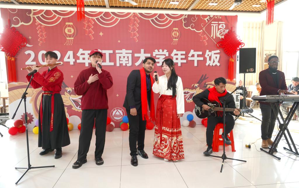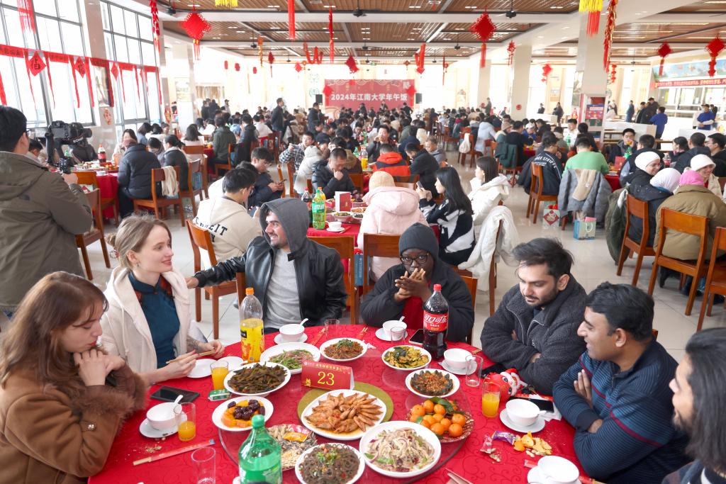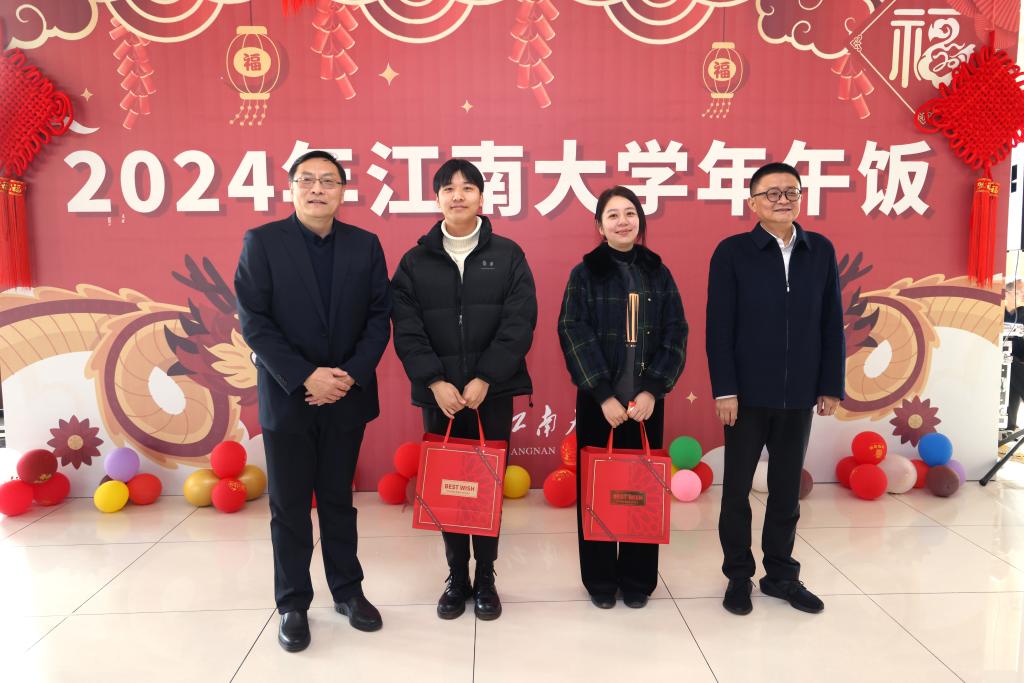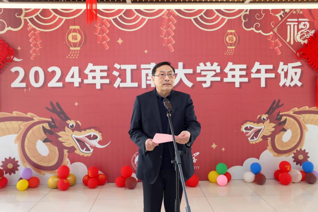 午宴會(huì )場(chǎng)一食堂江南苑二樓張燈結彩,洋溢著(zhù)濃濃的年味。2月8日11點(diǎn)30分,2024年oety歐億年午飯正式開(kāi)始。無(wú)錫市政府副市長(cháng)秦詠薪、市政府副秘書(shū)長(cháng)顧文龍、市委教育工委書(shū)記范良、oety歐億黨委書(shū)記吳正國、黨委副書(shū)記戴月波,以及各相關(guān)職能部門(mén)和學(xué)院領(lǐng)導、教師代表與260余名留校學(xué)生歡聚一堂,共同迎接新春佳節。在暖意融融的團圓宴開(kāi)始前,吳正國向全體師生員工致以新春的問(wèn)候和祝福。他在致辭中提出,回首2023年學(xué)校事業(yè)奮進(jìn)有為,成績(jì)喜人,捷報頻傳,以食品為主的農業(yè)科學(xué)進(jìn)入ESI世界前萬(wàn)分之一,食品科學(xué)工程、輕工技術(shù)與工程、設計學(xué)三個(gè)學(xué)科進(jìn)入A+,食品學(xué)科連續五年蟬聯(lián)世界第一,新增中國工程院院士1人……一系列成果的取得,得益于無(wú)錫市委市政府的關(guān)心支持,以及全校師生的共同努力。新的一年,希望大家能夠與時(shí)代同向,與祖國同行,與人民同心,以?shī)^斗的姿態(tài)共同駛向教育強國的璀璨未來(lái)!