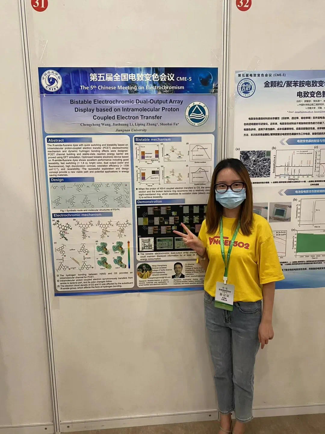 起初,她沒(méi)能參與軍工類(lèi)項目,從“軍”路戛然而止,滿(mǎn)腔熱血無(wú)處拋灑,但她仍然堅信有志者,事竟成?!安荒苤苯訁⑴c變色偽裝項目,實(shí)現從軍夢(mèng),那就從生活應用開(kāi)始,時(shí)刻準備著(zhù)?!贬槍?/span>變色材料光學(xué)記憶性能的“卡脖子”難題,以及近乎被日本百樂(lè )墨水株式會(huì )社壟斷的光學(xué)記憶型熱響應變色材料知識產(chǎn)權問(wèn)題,王成成基于太陽(yáng)能利用和變色染料設計,研發(fā)了太陽(yáng)能或電能驅動(dòng)變色,且在沒(méi)有陽(yáng)光或電源時(shí)能夠記憶住顏色的節能變色材料,并將其應用到節能窗戶(hù)、健康監測和人體熱管理等方面,為未來(lái)的實(shí)踐探索開(kāi)辟了新的道路,同時(shí)契合“碳達峰,碳中和”發(fā)展理念和紡織行業(yè)“十四五”發(fā)展綱要。基于此,她主持了江蘇省研究生科研與實(shí)踐創(chuàng )新計劃項目,申請并授權了國際發(fā)明專(zhuān)利1項、國家發(fā)明專(zhuān)利5項,打破了光學(xué)記憶雙穩態(tài)變色材料的技術(shù)壟斷。在此期間,她遠赴加拿大滑鐵盧大學(xué)進(jìn)行為期1年的交流學(xué)習,將材料記憶時(shí)間從72h提高至336h,為光學(xué)記憶智能變色紡織品的發(fā)展注入新的活力。